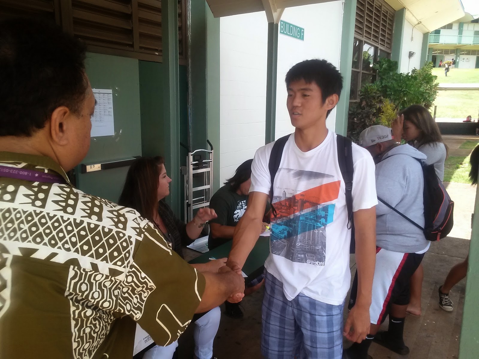| Eldon Nakagawa is congratulated by our TA Vice Principal Mr. Kalama for his excellent Academic record. |